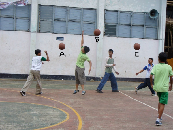 Untuk akhwat : Bola yang mana? Dimanakah bola yang sebenarnya pada foto Olimpiade Liga Kamus ini? A, B, atau C?